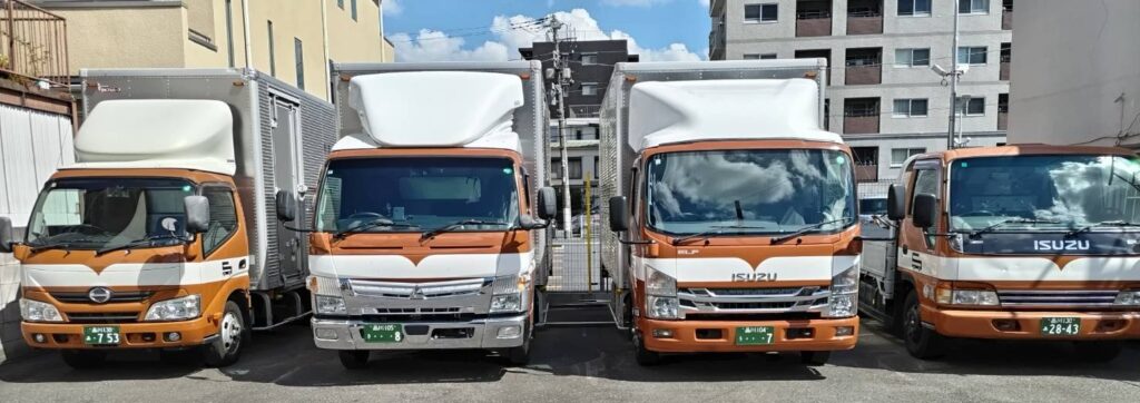 キャラバンをはじめ、2t平車、2tパネルゲート車、4tユニック車(エアサス)、4tウィングパワーゲート車(エアサス)など、計14台の車両を保有しています。